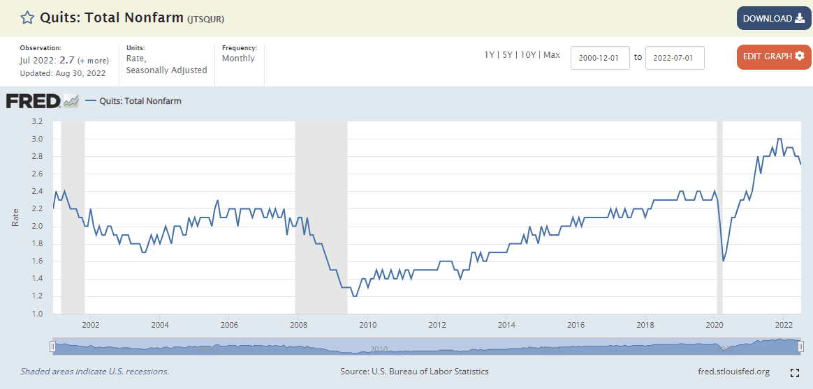 El número de personas renunciando sigue relativamente alto, sin aun dar señales de desaceleración importante en los Estados Unidos, una señal positiva para la economía, dado que habla de un mercado laboral fuerte. En este momento esta variable es vista como inflacionaria, pero el punto es que no podemos tener un clima laboral con tanta fortaleza, en medio de una crisis financiera.