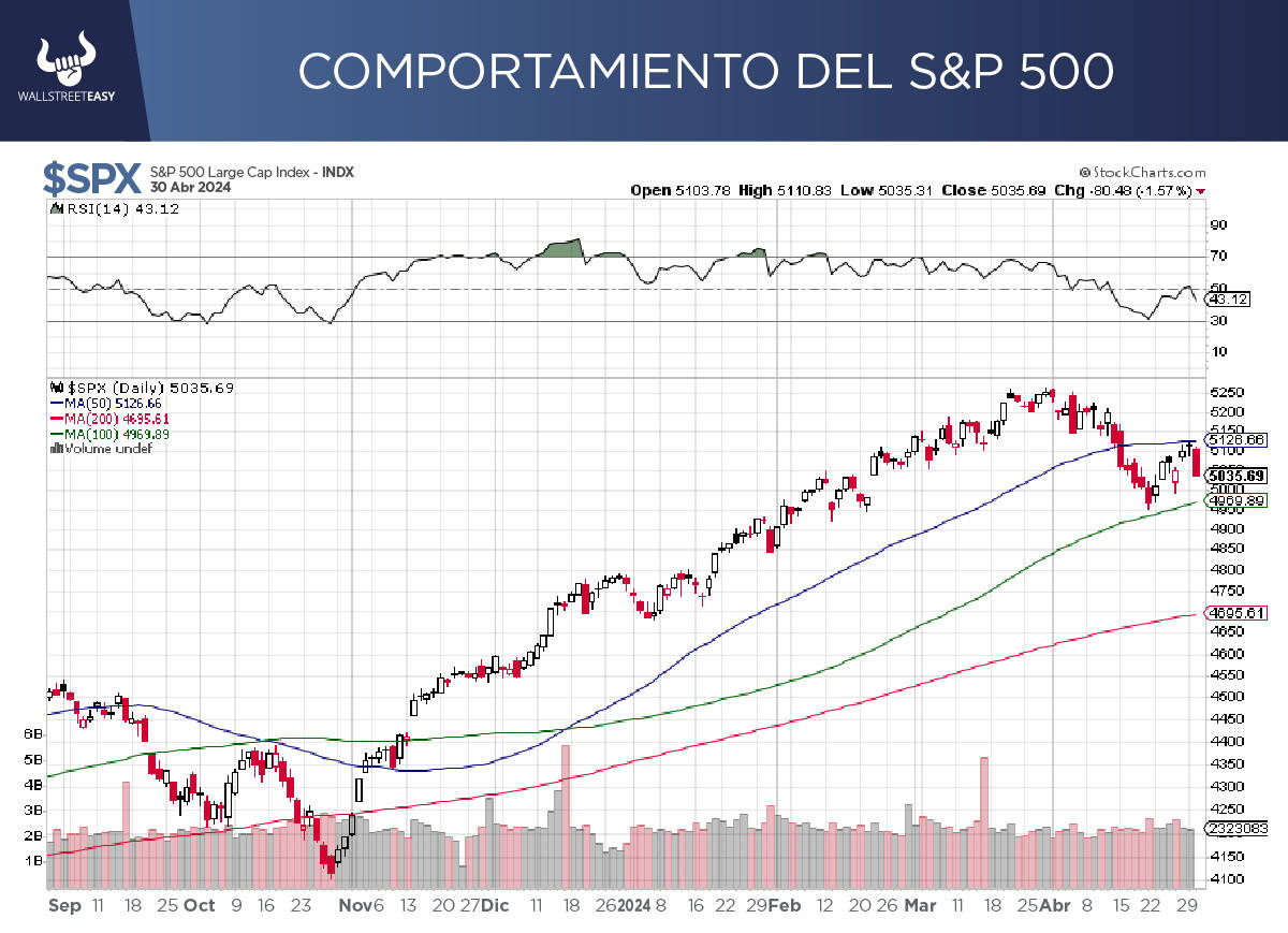 - El S&P 500 con toma de ganancias, después de tocar el promedio móvil de 50 días