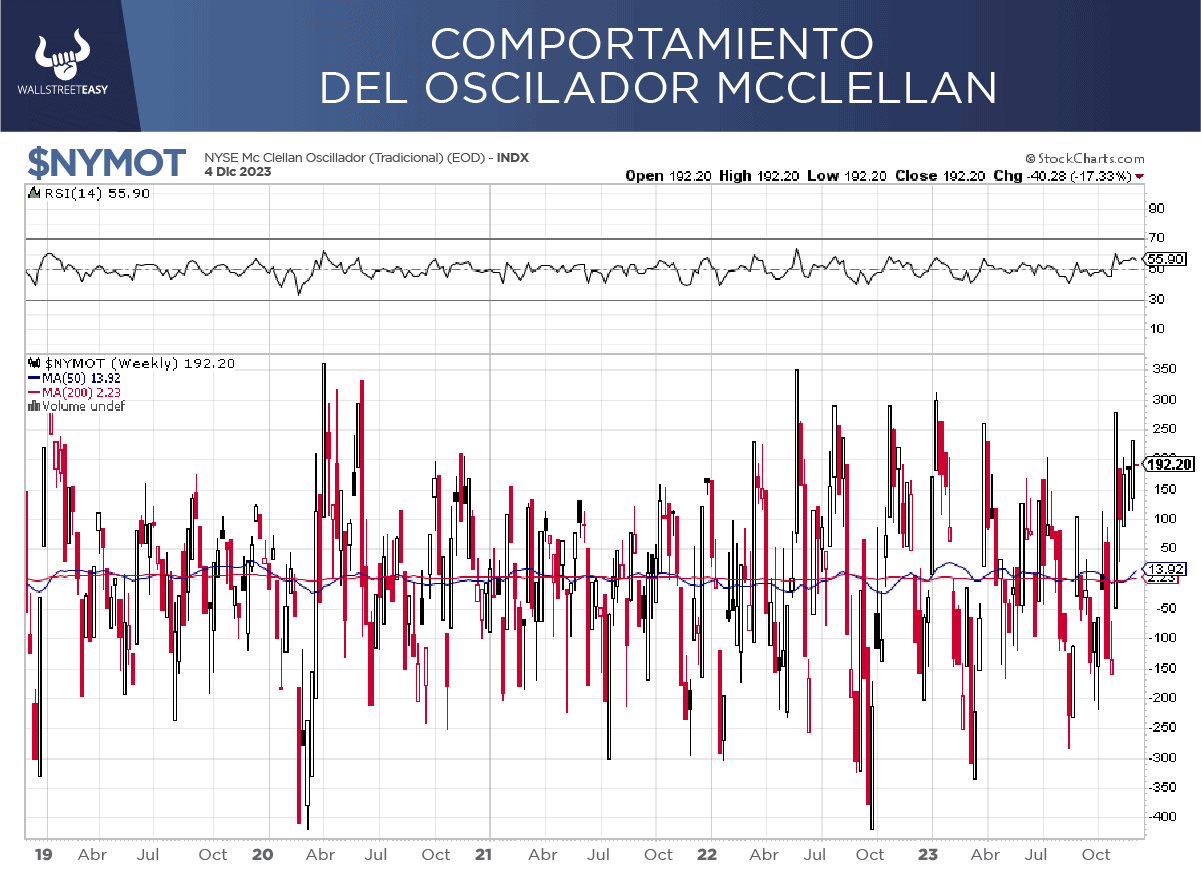 Otro factor para lograr esto, es el hecho de que el mercado está en sobrecompra, según el índice de inercia McClellan, pero no es una sobrecompra severa como otros momentos, así que hay que ver si se consolida y baja un poco, o si por el contrario empieza a arrimarse a niveles extremos.