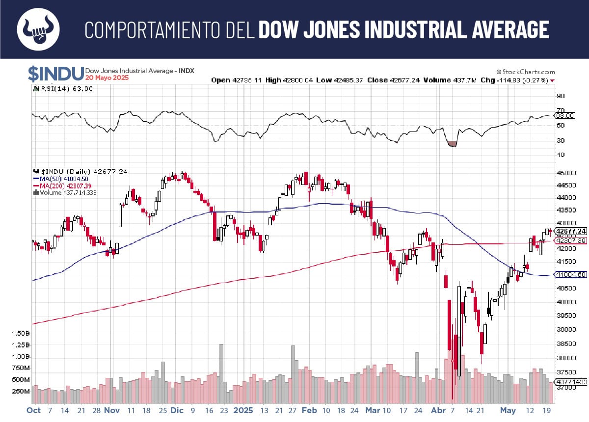 - Dow Jones por encima de su promedio móvil de 200 días