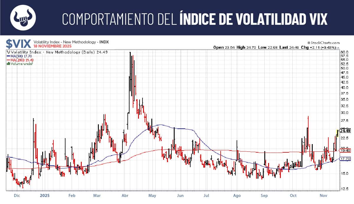 El mercado se encuentra con alta volatilidad, por lo que el VIX supera el nivel de los 20 y alcanzando su nivel más alto desde mediados de octubre.