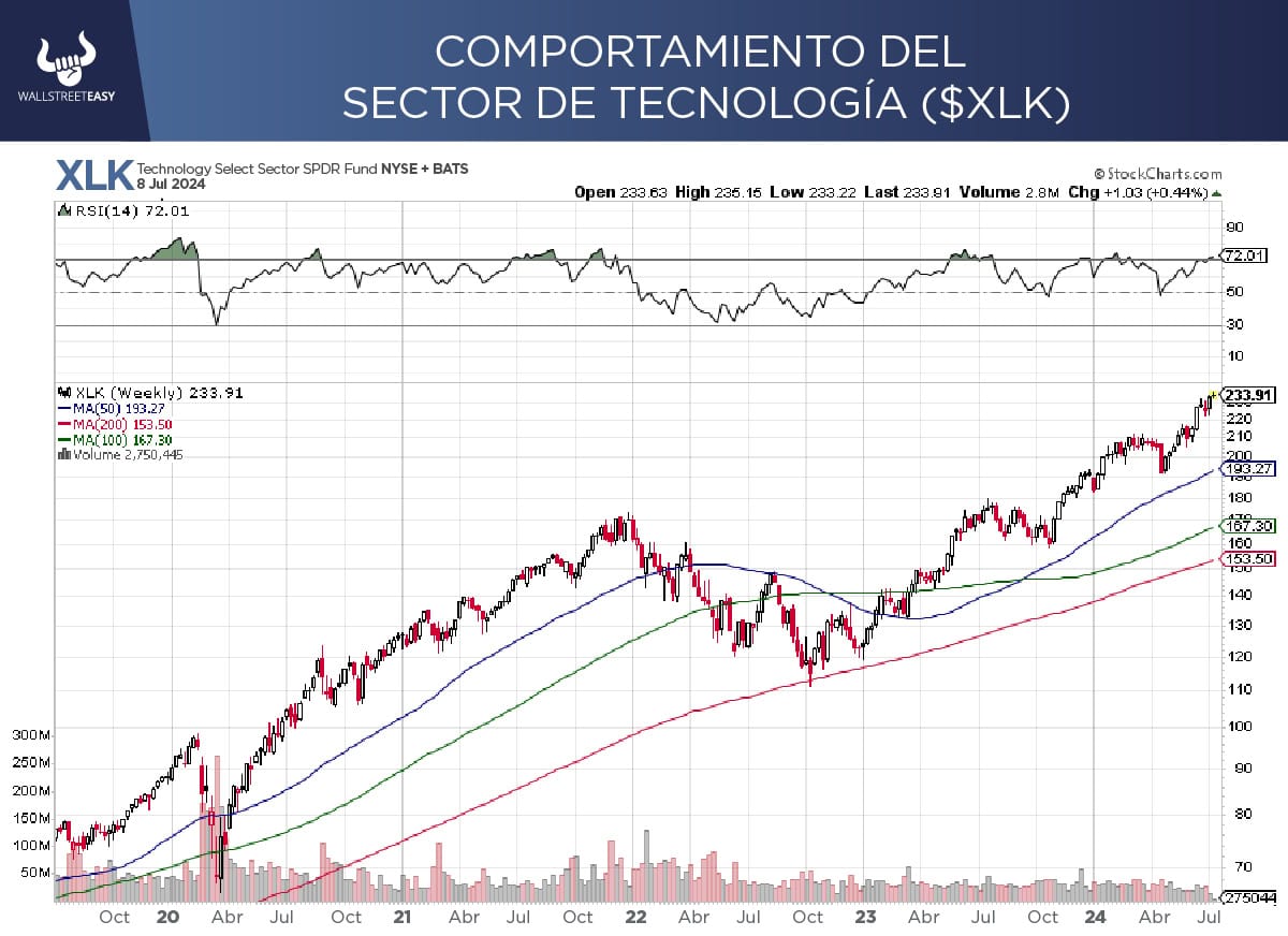 QUÉ QUÉ El líder de este rally ha sido el sector tecnología, pero mantiene un nivel de sobrecompra no visto desde junio del año pasado, que generó tomas de ganancias. Entonces para que continúe el rally, es probable que necesitemos que otros sectores participen.