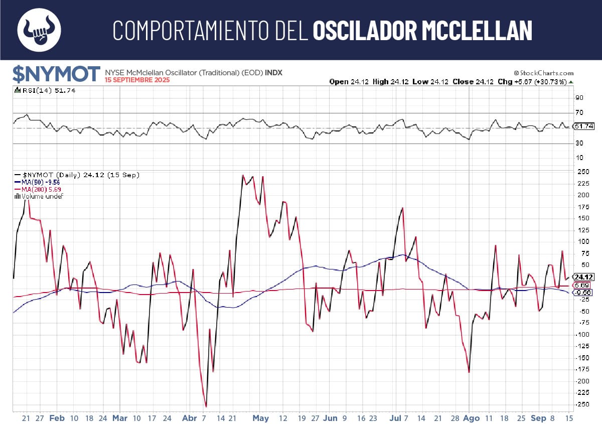 PARA NO PERDER DE VISTA El índice de inercia nos muestra un mercado en estado neutro, lo cual nos dice que inclusive estando en sobrecompra, si la Reserva Federal se muestra sin miedo a la economía, pero prudente al bajar la tasa, puede generar algún rally extra en las semanas venideras.