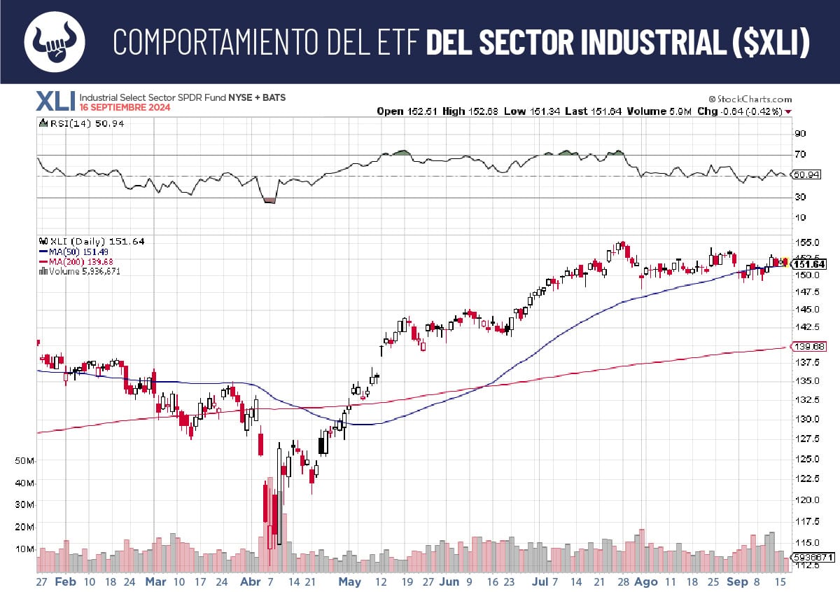 EN FIN Por último, de los sectores que se beneficiarían de una Reserva Federal dovish o pro bajar la tasa, está el sector industrial, como uno de los que hasta ahora no ha visto mayores mejoras y está situado en un piso técnico.