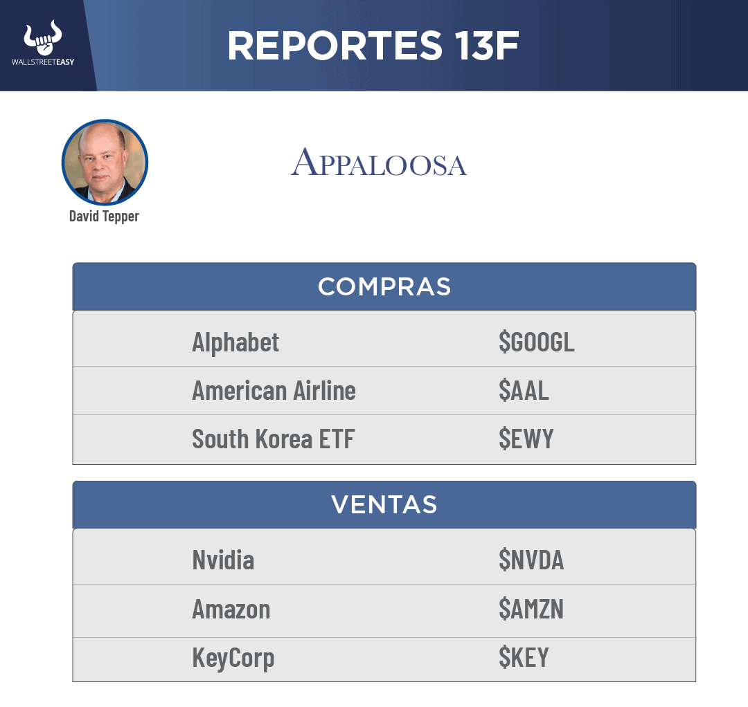 • David Tepper realizó una profunda reestructuración de su cartera con 9 salidas completas, 3 nuevas posiciones y rotaciones agresivas en semirremolques, vivienda y aerolíneas. Se eliminó por completo la exposición a bancos regionales.