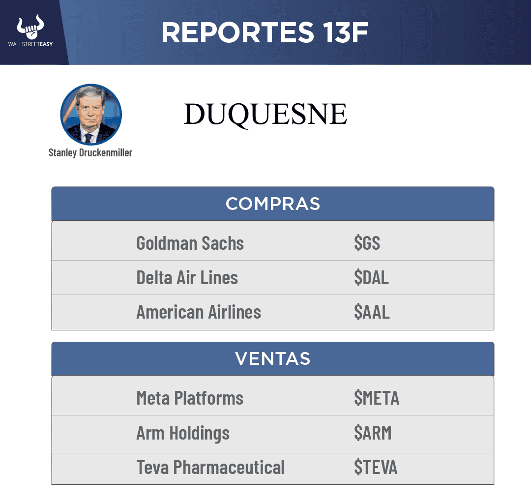 • Compras clave: Su gran apuesta del trimestre fue American Airlines (AAL), cuya posición incrementó 53%. También sumó posición en Micron Technology (MU) con un incremento del 200%. Mientras que agregó a su portafolio el ETF de Sur Corea (EWY).