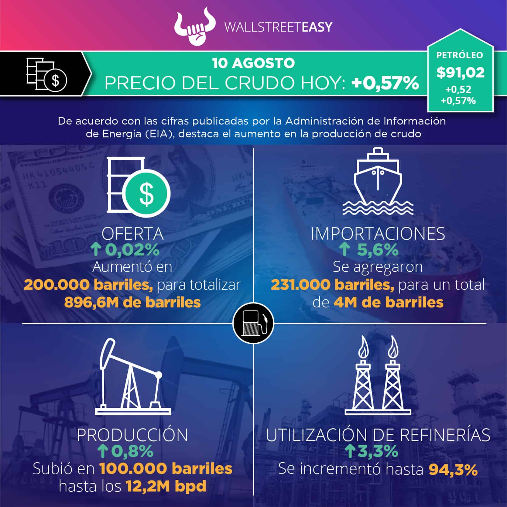 EIA, por sus siglas en inglés) reportó 896,6M de barriles en existencias de crudo, tanto comerciales como estratégicas, lo que representa un aumento de 200.000 barriles. El Instituto Americano del Petróleo (