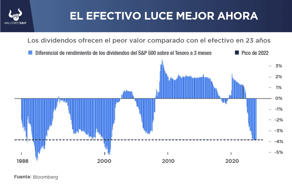 S&P 500 (el inverso del múltiplo precio/ganancias, o el rendimiento efectivo que se recibe en ganancias cada año).