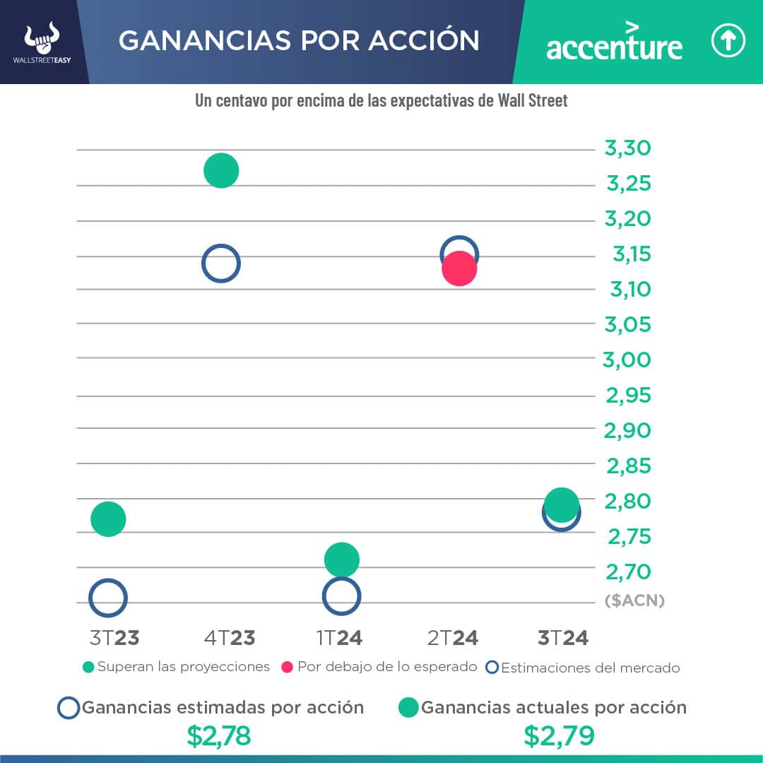 - Para el trimestre actual, Accenture prevé ingresos de entre $16.850M y $17.450M, mientras que los analistas esperaban $16.920M.