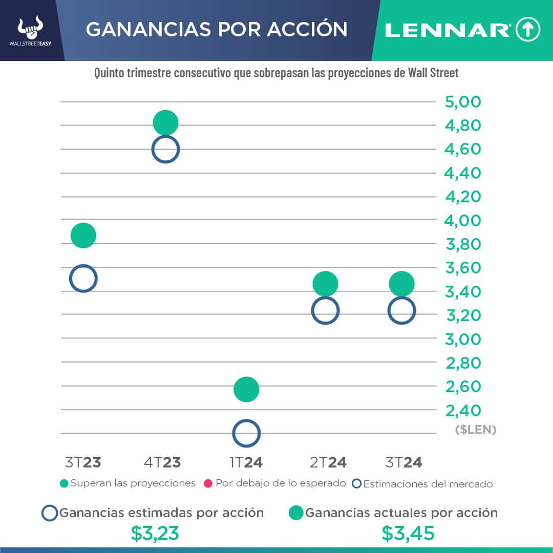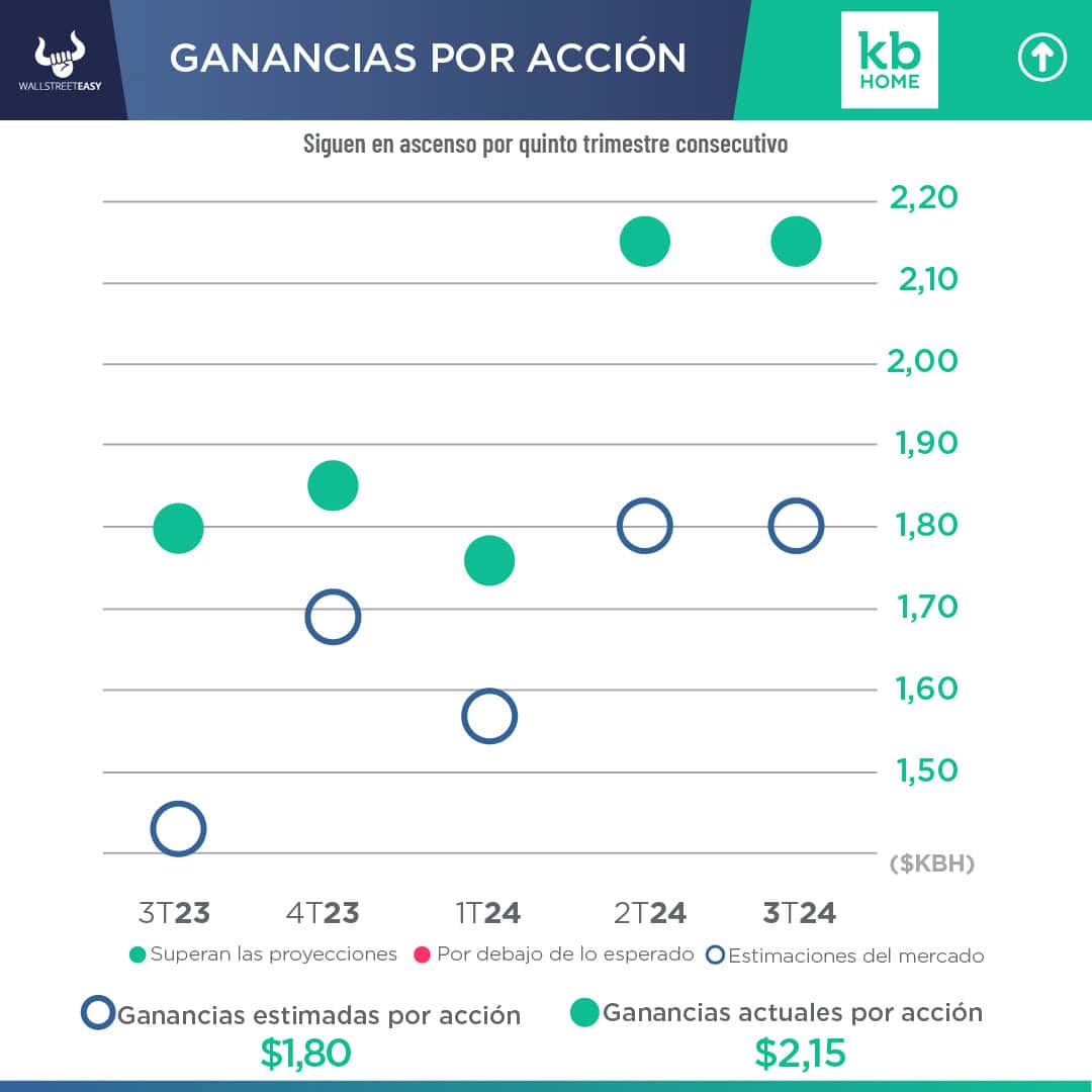 - El beneficio por acción de la constructora de viviendas fue de $2,15, superando la estimación de $1,80 por acción. Cabe destacar que la empresa ha superado las estimaciones de beneficios en ocho ocasiones durante los últimos nueve trimestres.