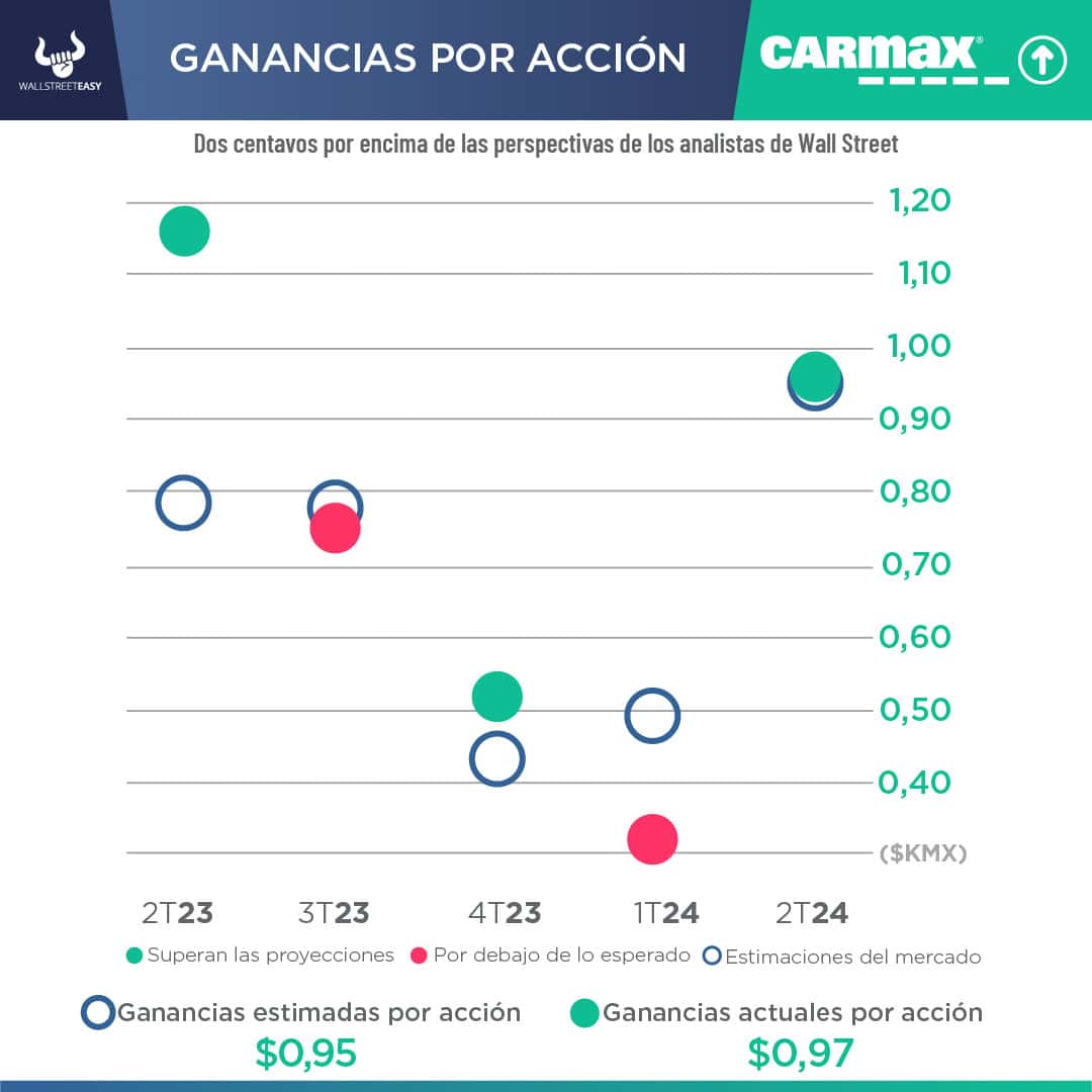- El minorista de vehículos usados reportó ganancias ajustadas de 97 centavos por acción con ingresos de $7.110M. Los analistas esperaban beneficios de 95 céntimos por acción e ingresos de $7.160M.