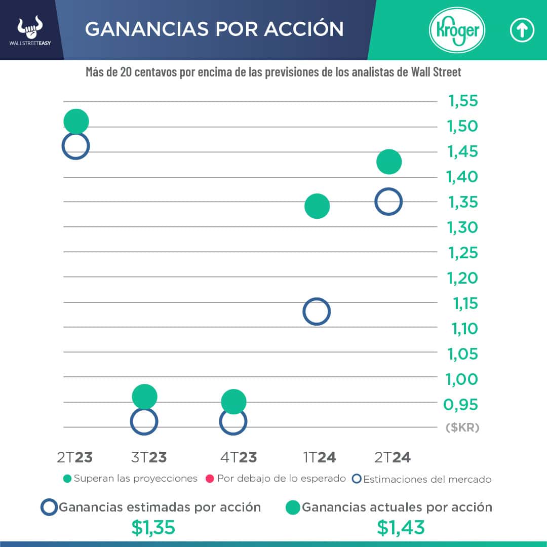 - Kroger también reafirmó sus previsiones de beneficios por acción para 2024 de entre $4,30 y $4,50, con un punto medio casi plano con los $4,41 que esperan los analistas.