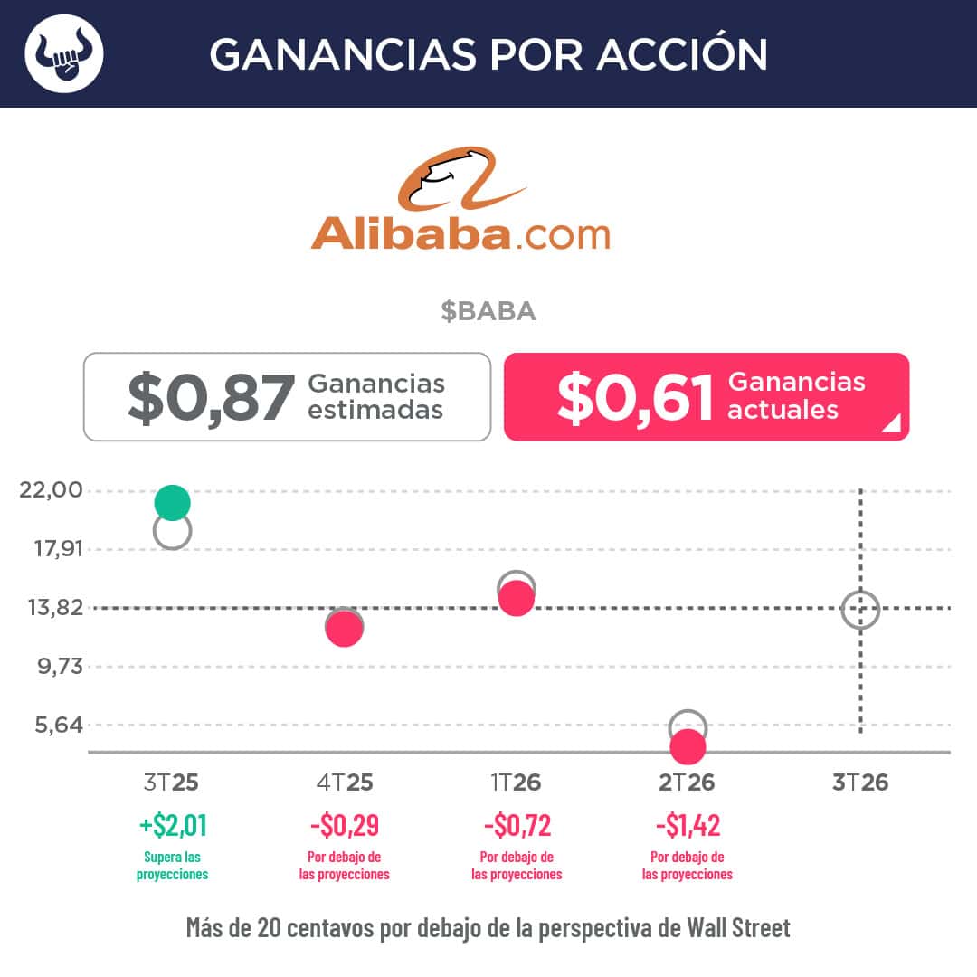 - El minorista en línea reportó ganancias fiscales de $2.950M en el trimestre. Por acción, la empresa con sede en Hong Kong obtuvo una ganancia ajustada de 61 centavos por acción, por debajo de la previsión de 87 centavos. Además, registró ingresos por $34.810M en el periodo.