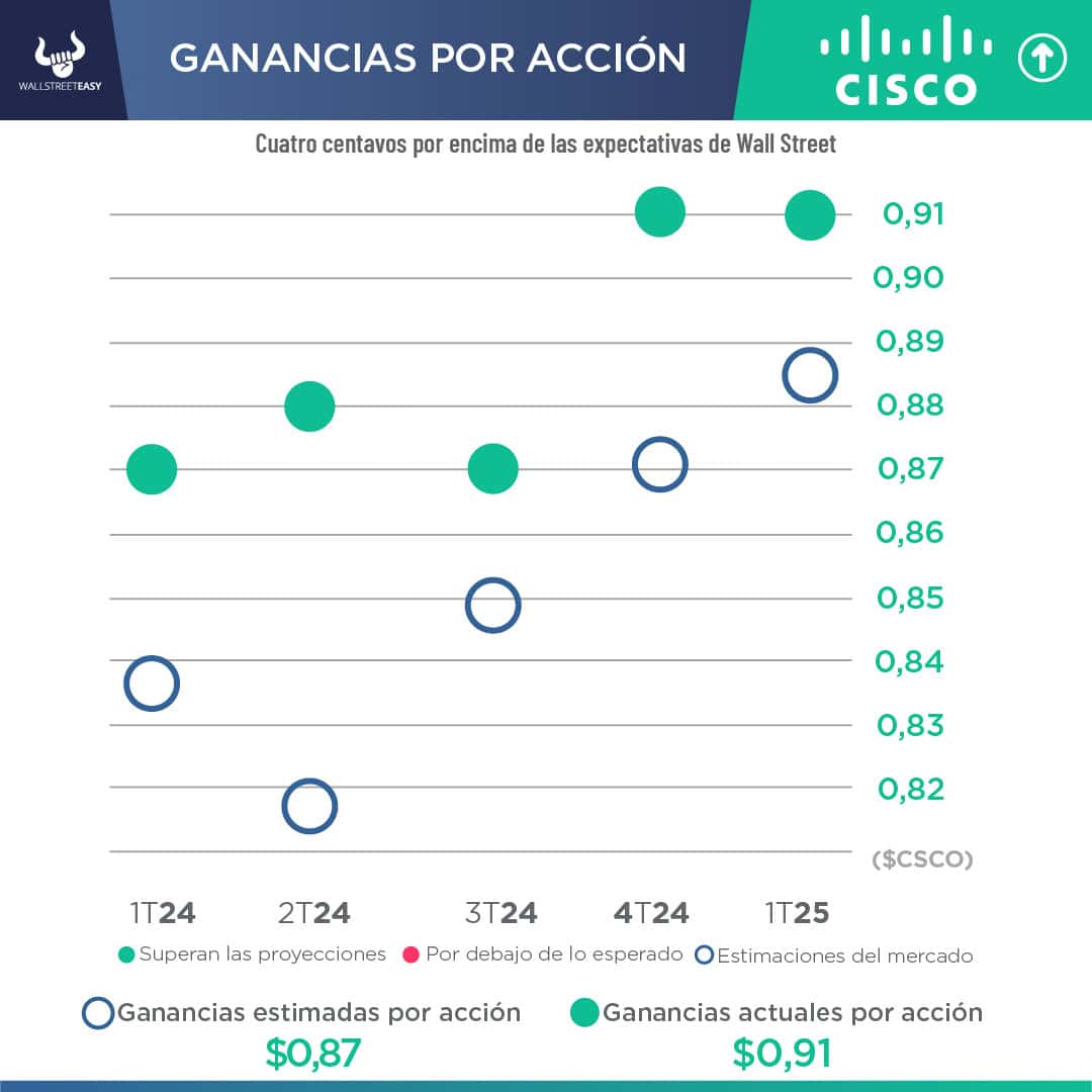 • Cisco elevó sus previsiones para todo el año a entre $3,60 y $3,66 de beneficio por acción ajustado sobre ingresos de entre $55.300M y $56.300M. Los analistas esperaban un beneficio anual ajustado de $3,58 por acción con ingresos de $55.890M.