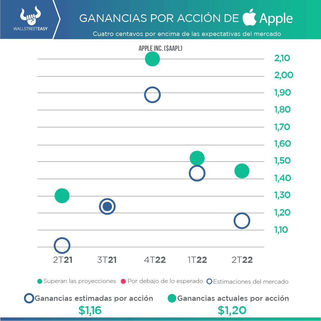 • Apple no proporcionó directrices formales para el trimestre. Los analistas esperaban que la empresa diera una orientación para el trimestre actual de $1,31 de beneficio por acción y casi $90.000M en ventas.