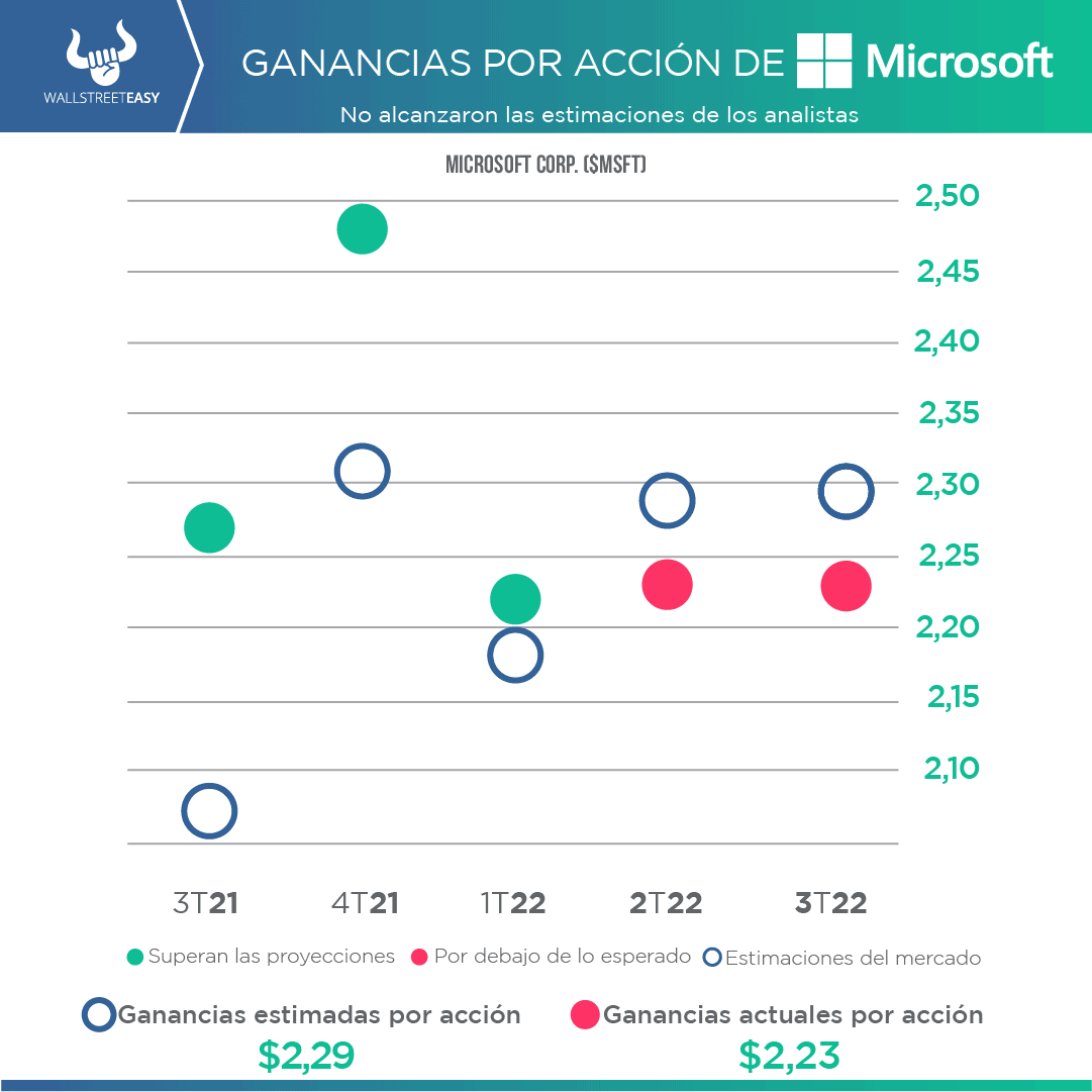 • En el trimestre, el mayor desafío fue el empeoramiento de los tipos de cambio. Microsoft dijo que eso redujo los ingresos en $595M y las ganancias en cuatro centavos por acción. En junio, redujo sus previsiones trimestrales de ingresos y ganancias solo por las fluctuaciones de los tipos de cambio. Los ingresos y las ganancias del trimestre se situaron en el extremo inferior de los rangos que había propuesto en junio.