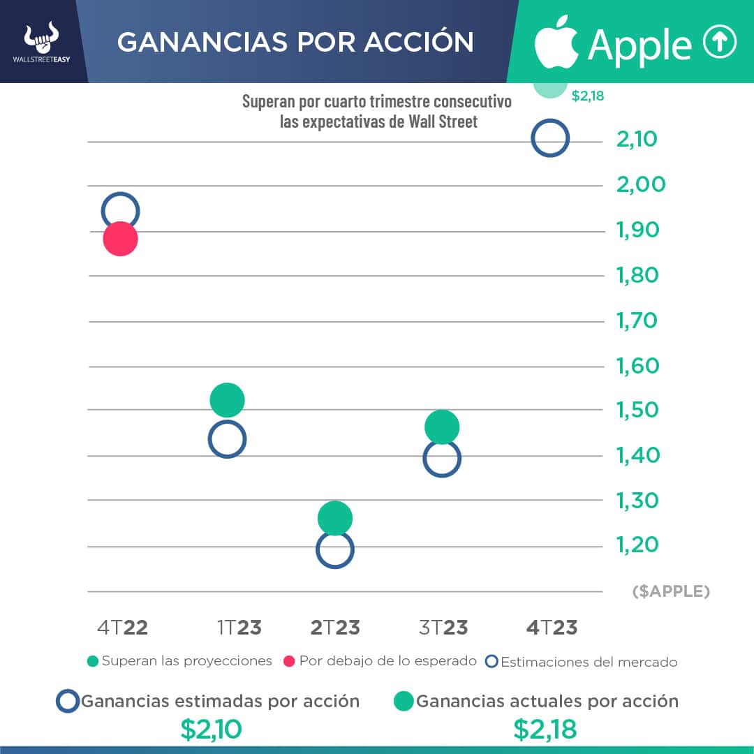 - En el trimestre de diciembre, la matriz de Google registró ingresos de $86.300M, +13% más que hace un año y por encima de la previsión de $85.300M del consenso de Wall Street. El beneficio por acción fue de $1,64, superando la proyección de $1,59 por acción.