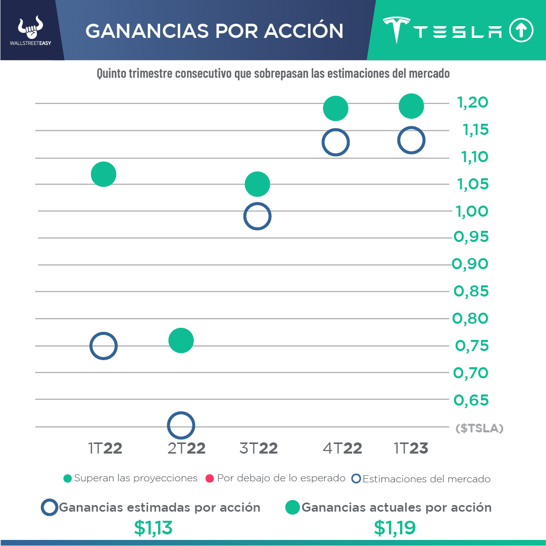 • El fabricante de vehículos eléctricos tuvo beneficios ajustados de $1,19 frente a los $1,13 por acción esperados, e ingresos de $24.320M frente a los $24.160M previstos.