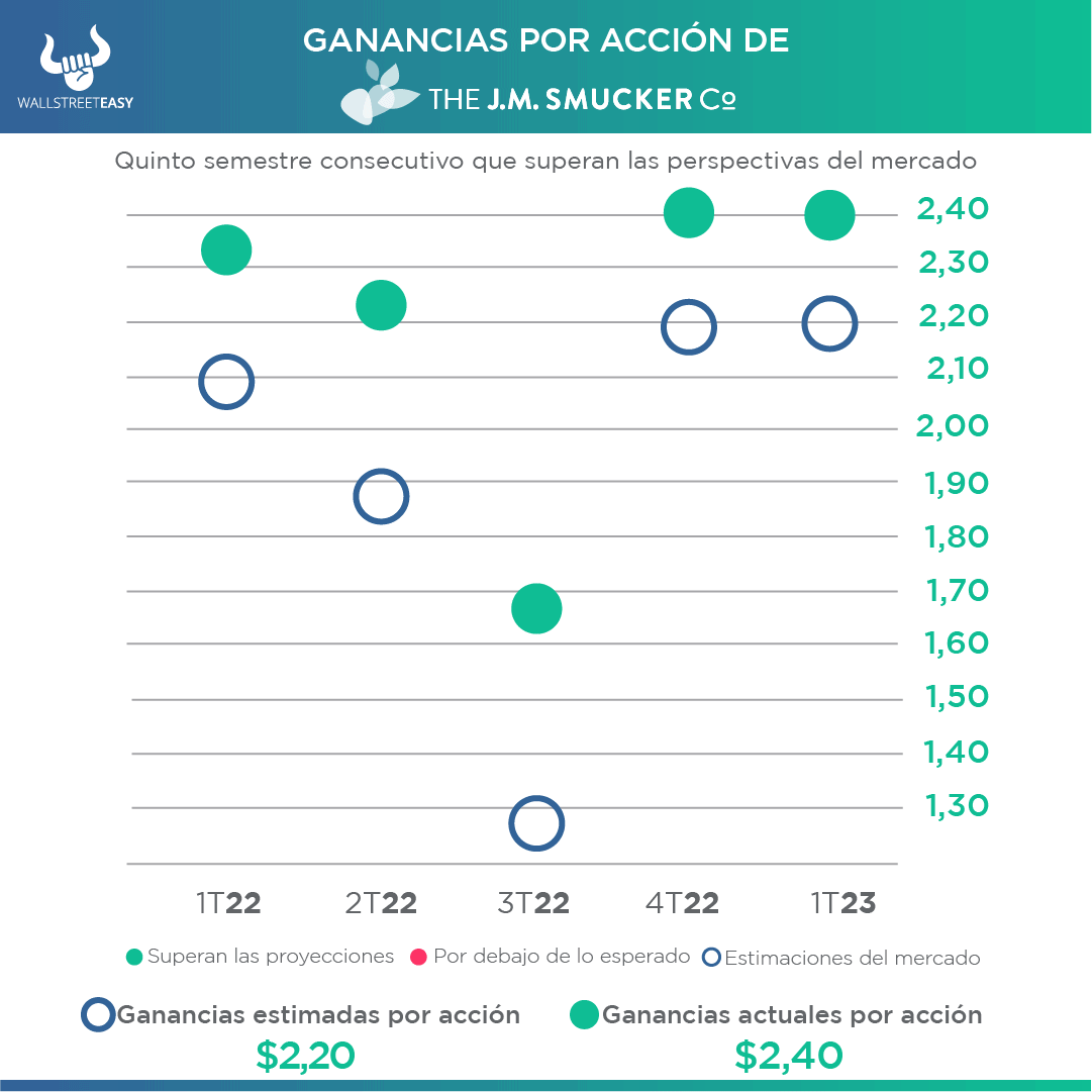 • En el trimestre, el fabricante de mermelada vio cómo las ventas netas aumentaron en $155M con respecto al año anterior, hasta los $2.200M, mientras que el beneficio ajustado por acción fue de $2,40. Ambas cifras superaron los $2.180M de ingresos y los $2,20 de beneficios por acción previstos.