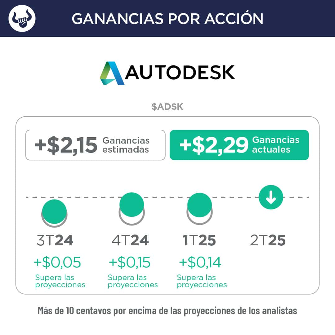 - Autodesk elevó sus previsiones de ingresos fiscales para todo el año de entre $6.890M y $6.960M a entre $6.920M y $7.000M, frente a la estimación de $6.930M.
