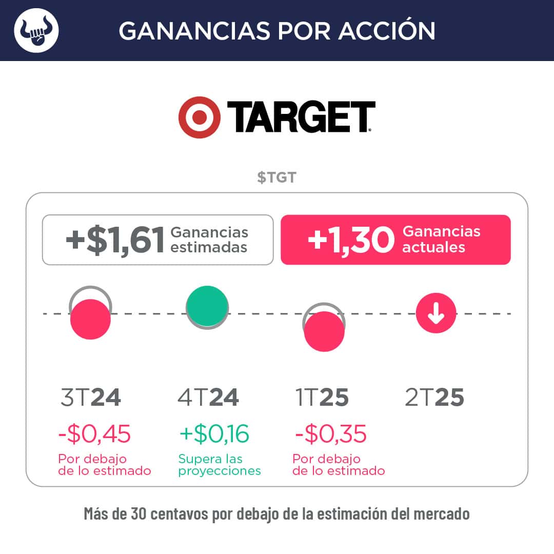 - El minorista de descuento obtuvo un beneficio por acción de $1,30 ajustado frente a los $1,61 esperados, e ingresos de $23.850M, por debajo de la expectativa de $24.270M.