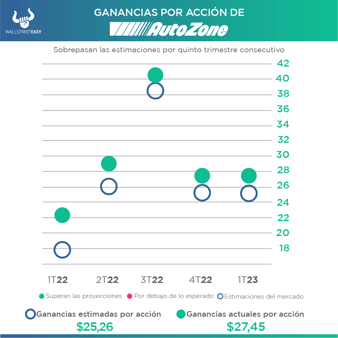• Aunque AutoZone superó las previsiones de los analistas en el trimestre, Wall Street prevé que el beneficio por acción caiga -8% en el trimestre actual, hasta $20,58. Los analistas también esperan que los ingresos se mantengan estables en comparación con el año pasado.
