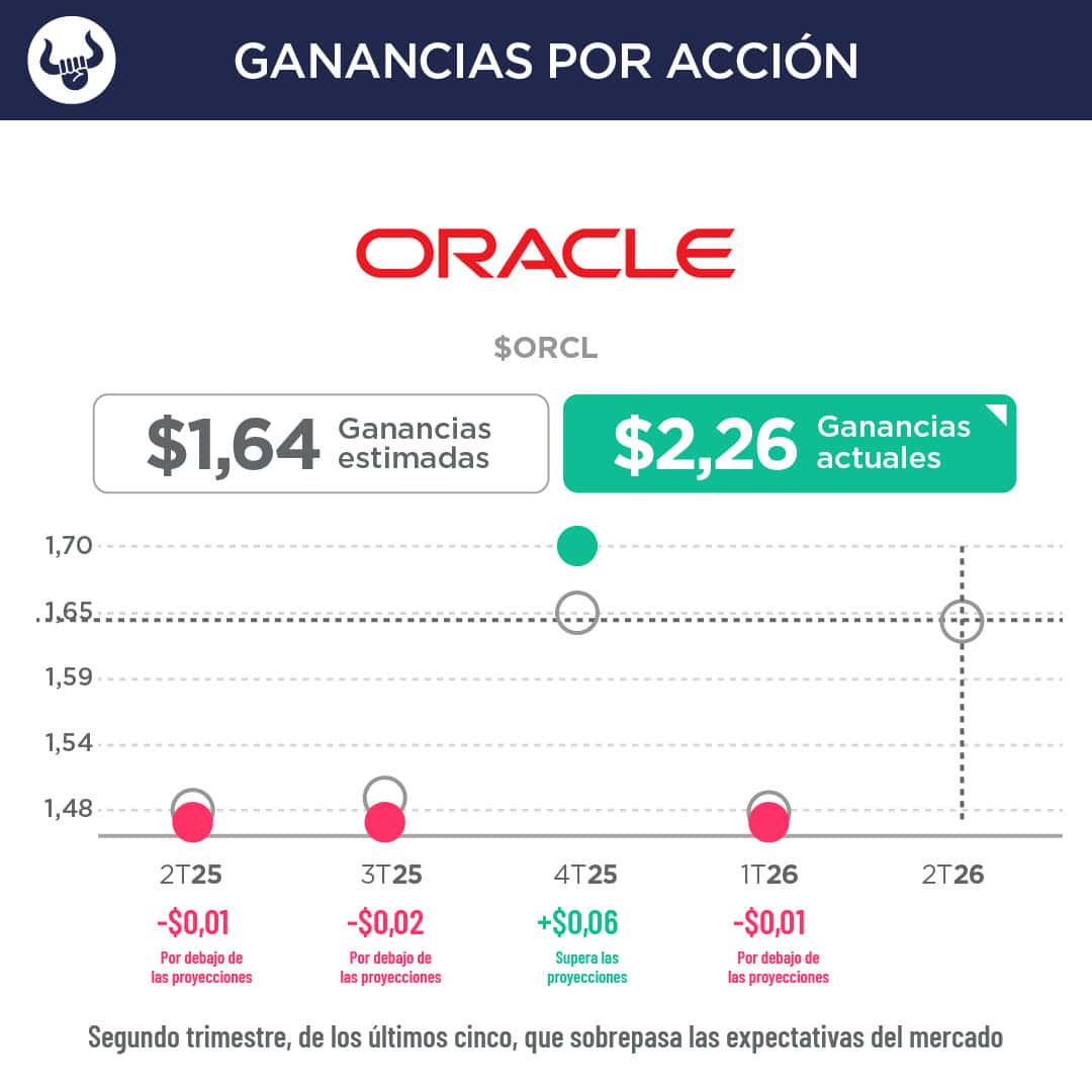 - Oracle afirmó que las obligaciones de rendimiento restantes (ingresos contratados aún no reconocidos) crecieron 438% interanual hasta alcanzar los $523.000M.