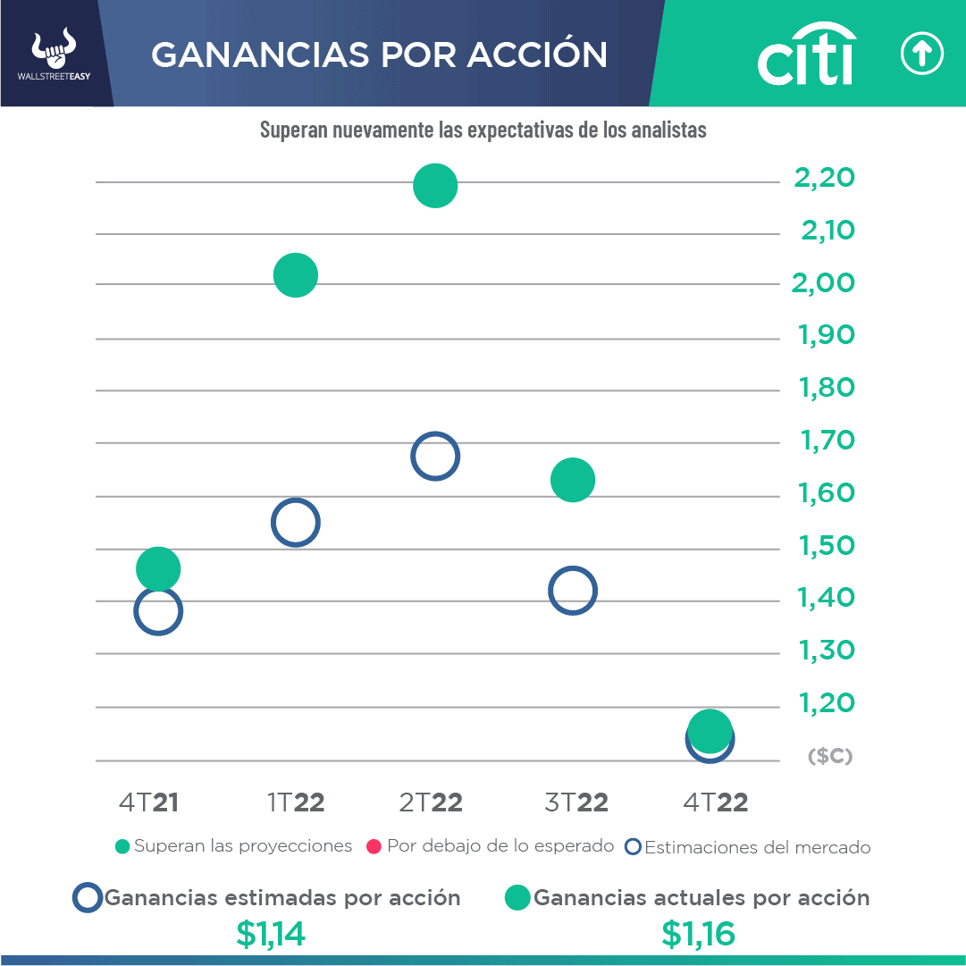 • Los ingresos netos de Citigroup cayeron -21%, debido en gran parte a la ralentización del crecimiento de los préstamos en su banca privada, junto con las expectativas de un entorno macroeconómico más débil en el futuro. Esta debilidad se vio parcialmente compensada por el aumento de los ingresos y la reducción de los gastos.