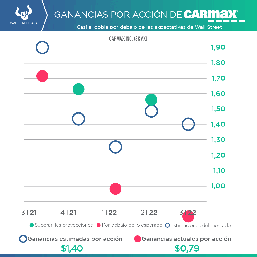 - Los resultados provocaron una fuerte venta de las acciones de CarMax, y pesaron mucho en las acciones de sus pares, así como en las de los fabricantes y proveedores de automóviles. La empresa cerró el pasado jueves con una caída del -25%, lo que supuso el mayor desplome diario en más de 22 años.