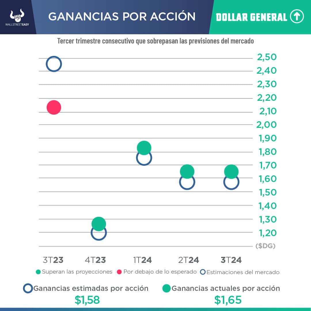• Dollar General espera que los beneficios del trimestre actual se sitúen entre $1,70 y $1,85 por acción, una cifra inferior a los $1,95 por acción previstos antes de la publicación de los resultados. Se espera que el crecimiento de las ventas en las mismas tiendas se sitúe en torno al 2%, mientras que los analistas esperaban 2,3%.