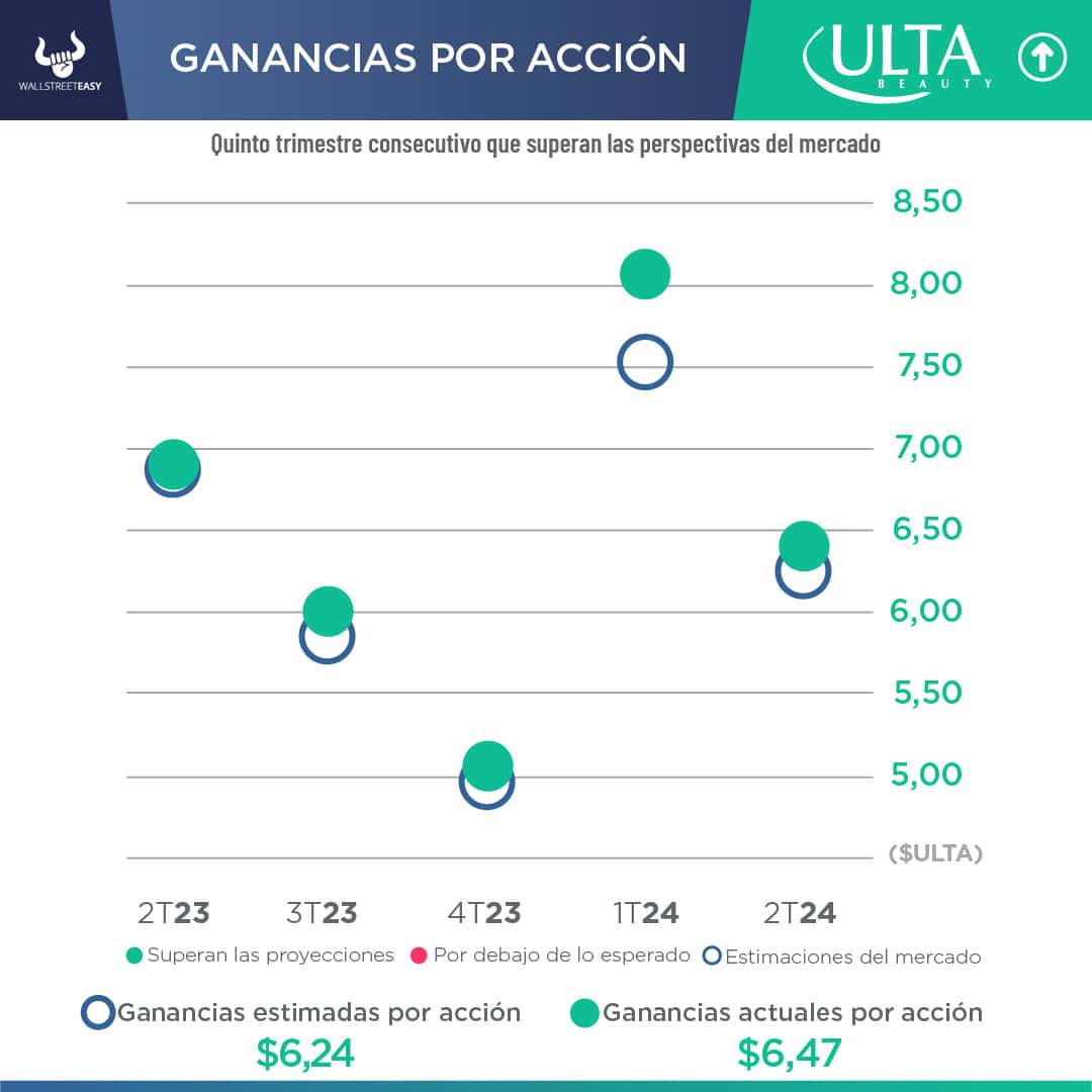 • Ulta obtuvo unos beneficios netos de $313,1M, o $6,47 por acción, frente a los 347,1 millones de dólares, o $6,88 por acción del año anterior. Se esperaban $6,24 por acción. Las ventas netas aumentaron ligeramente hasta los $2.730M, frente a los $2.630M del año anterior.
