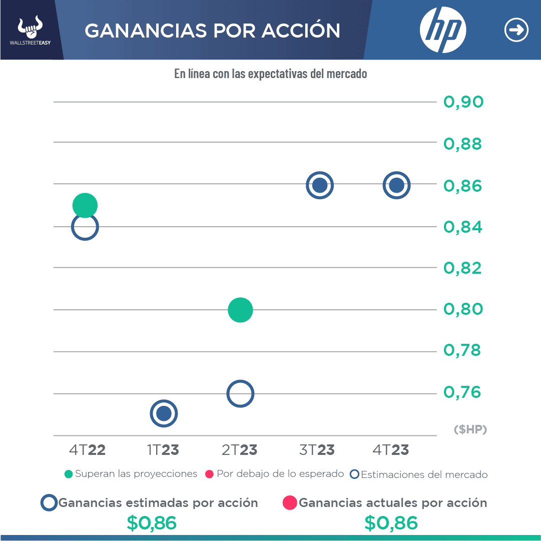 - HP registró ingresos de $13.200M, -9,9% menos que en el trimestre anterior y ligeramente por debajo del consenso, que apuntaba a $13.400M. Sobre una base ajustada, los beneficios fueron de 86 céntimos por acción, igualando las estimaciones, y situándose dentro del rango de 81 a 91 céntimos previsto por la dirección.