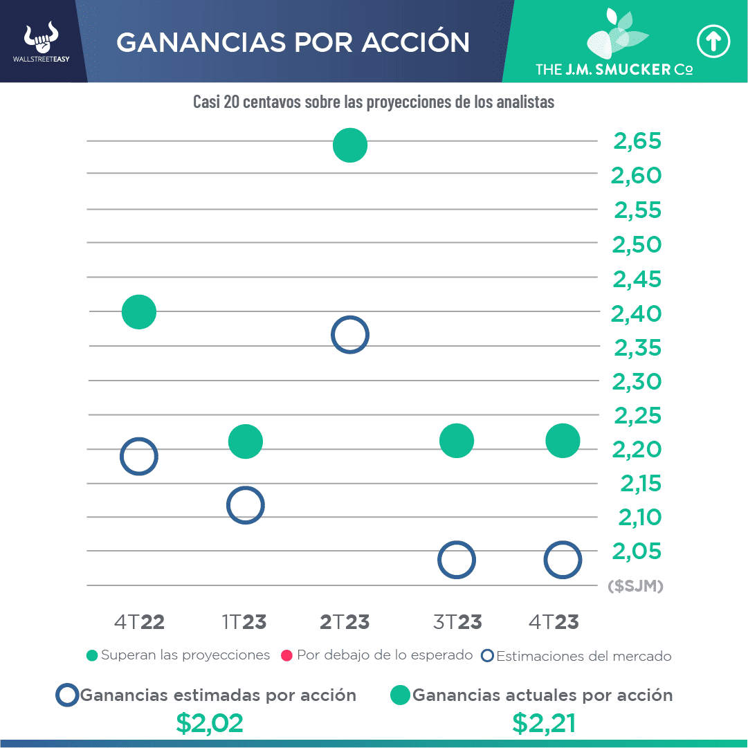 - Para todo el año, J.M. Smucker prevé ahora un beneficio ajustado por acción de entre $9,45 y $9,85, frente a su previsión anterior de entre $9,20 y $9,60.