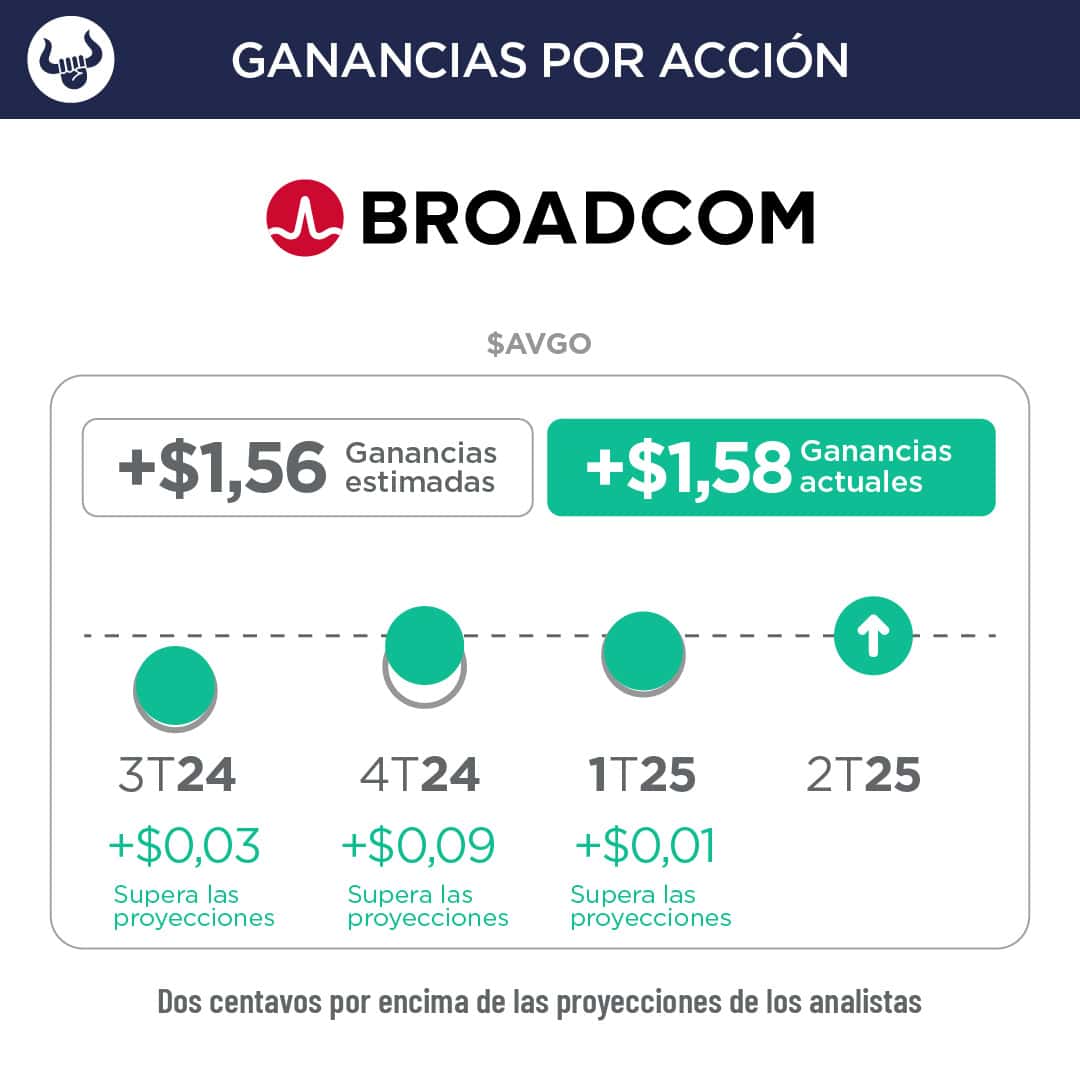 • Broadcom dijo que espera ingresos de $15.800M en el trimestre, frente a los $15.700M esperados por Wall Street. Los ingresos del último trimestre aumentaron +20% en términos anuales.