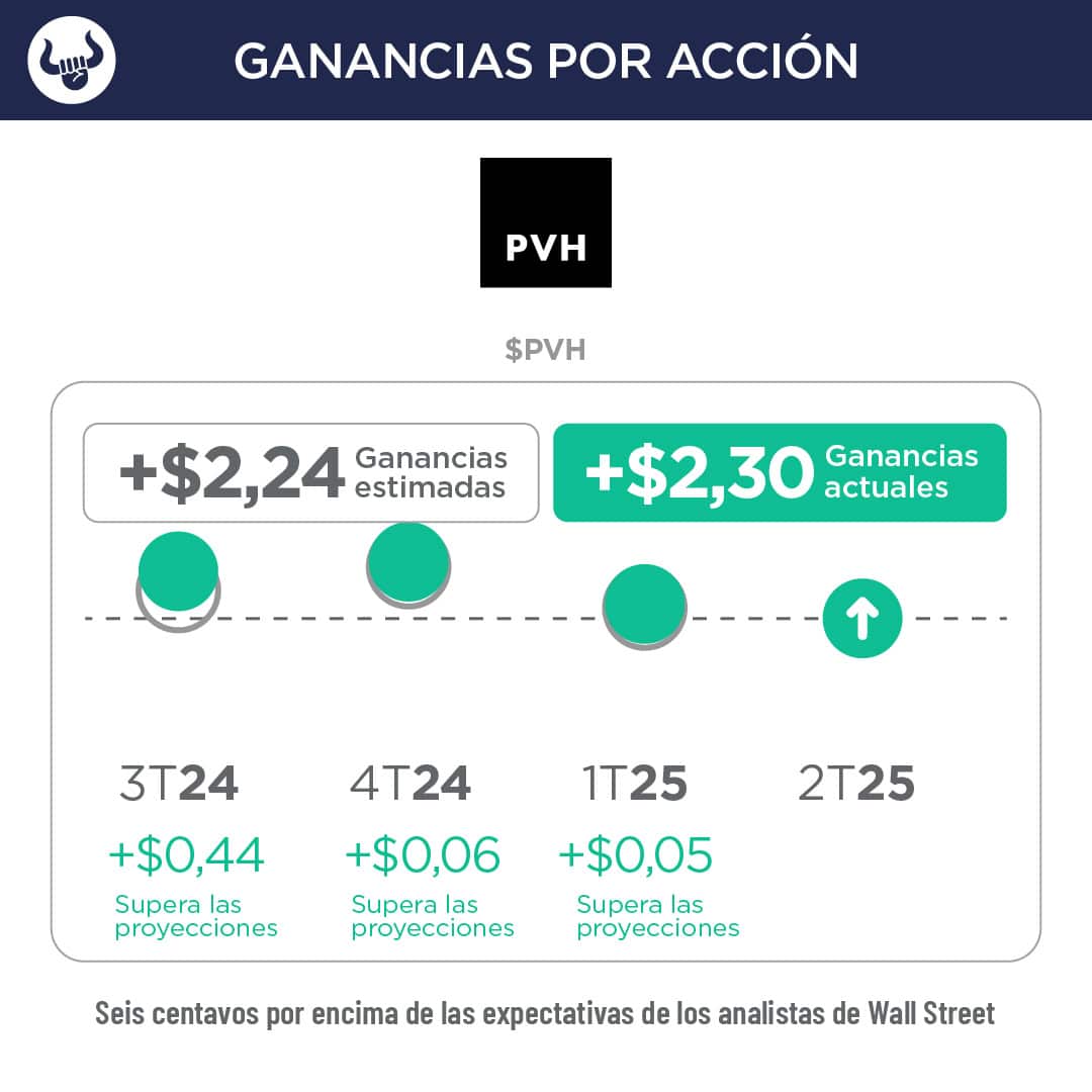 • El propietario de las marcas Calvin Klein y Tommy Hilfiger salió con ganancias trimestrales de $2,30 por acción, superando la estimación de $2,24 por acción, pero menores a las ganancias de $2,45 por acción hace un año.