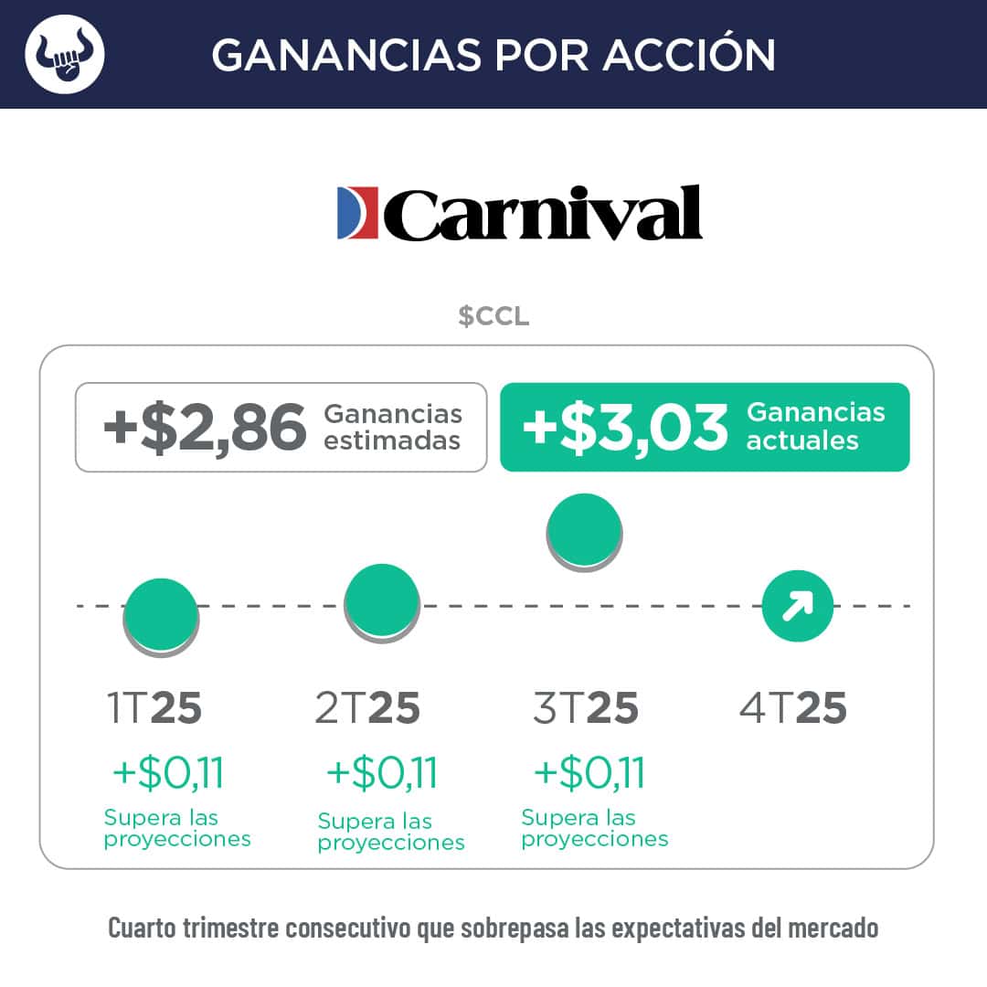 - Carnival elevó sus previsiones de ganancias para el año fiscal 2025 en $235M desde junio, con una proyección de $2.930Men ganancias ajustadas, 55% más que el año anterior.