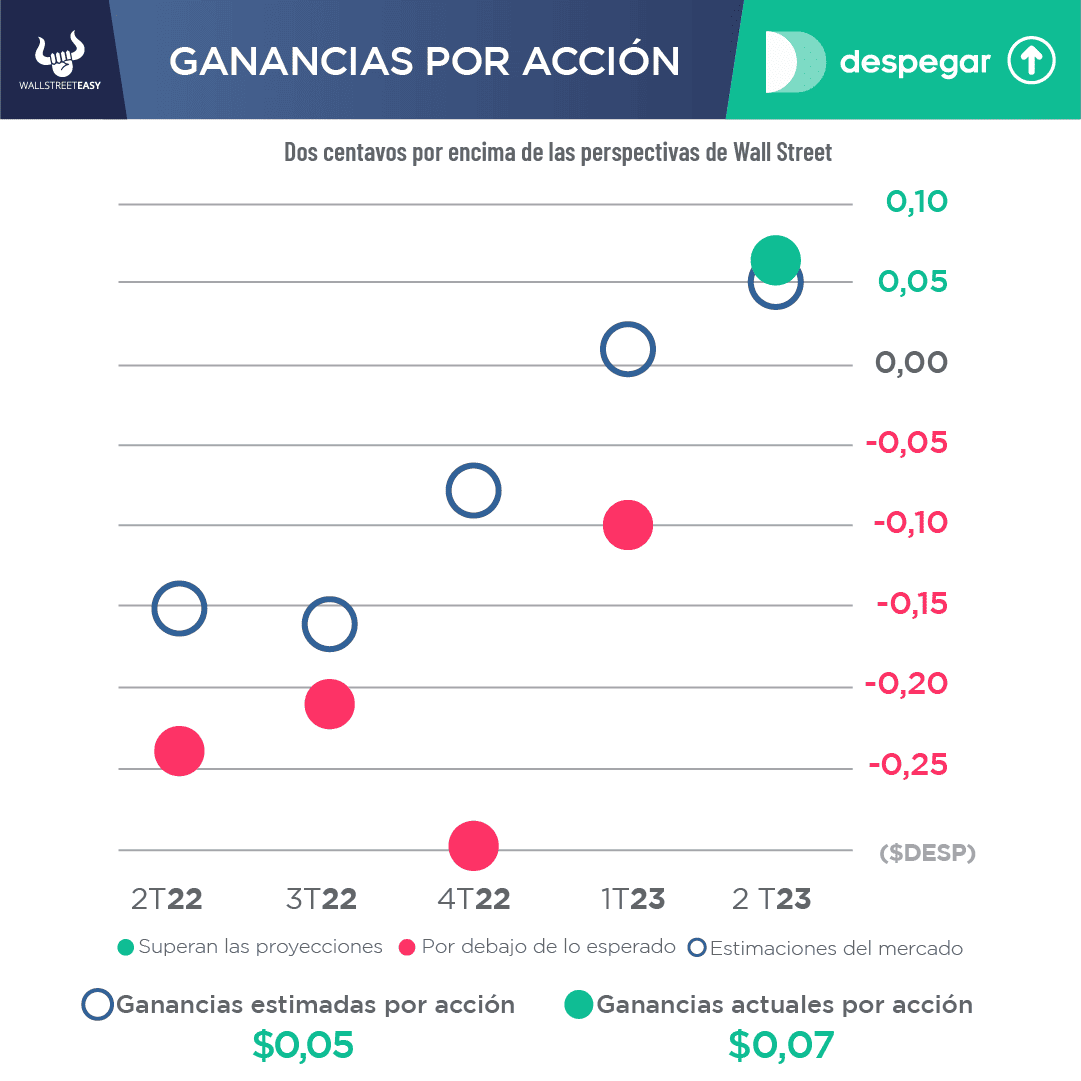 - La empresa de viajes en línea de Argentina obtuvo unos beneficios trimestrales de $0,07 por acción, superando la estimación de $0,05 por acción. Esto contrasta con la pérdida de $0,23 por acción de hace un año.