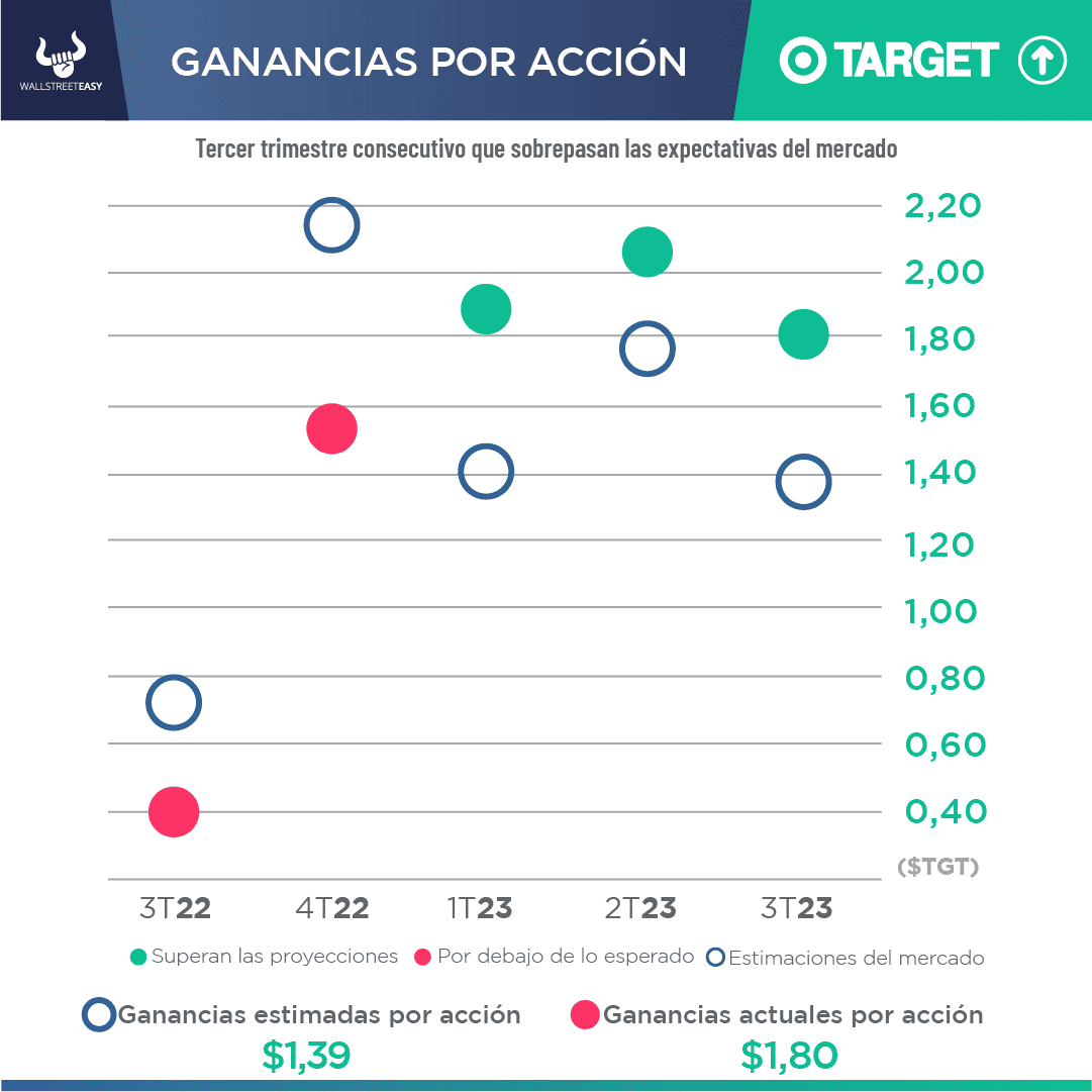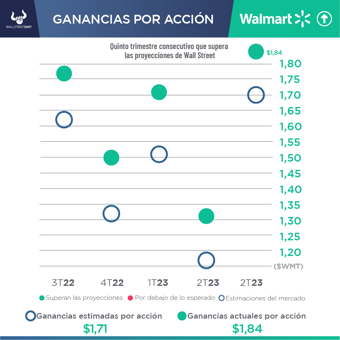 - Los beneficios por acción del gigante minorista fueron de $1,80, frente a los $1,39 previstos, mientras que los ingresos de $24.770M, no alcanzaron los $25.160M estimado por el mercado.