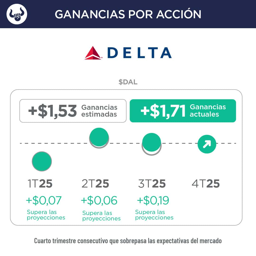 • La aerolínea con sede en Atlanta dijo que las ganancias aumentaron 11%, hasta alcanzar los $1.420M, o $2,17 por acción, frente a los $1.270M, o $1,97 por acción, del año anterior. Ajustando elementos extraordinarios, sus ganancias subieron 15%, hasta alcanzar los $1.120M, o $1,71 por acción, superando las estimaciones de $1,53.