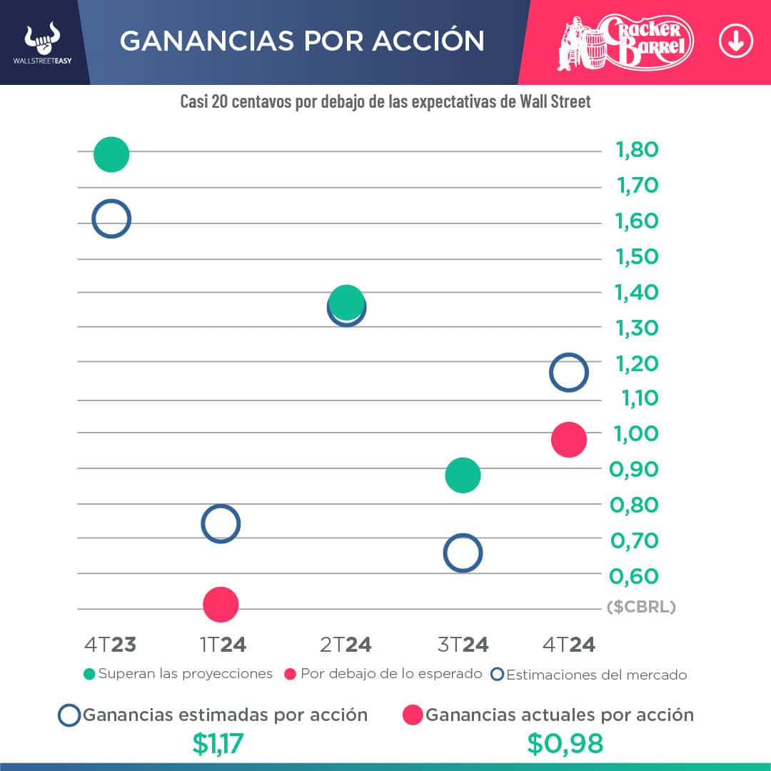 - Cracker Barrel espera ingresos para todo el año de entre $3.400M y $3.500M. Sus acciones han caído -46% desde principios de año.