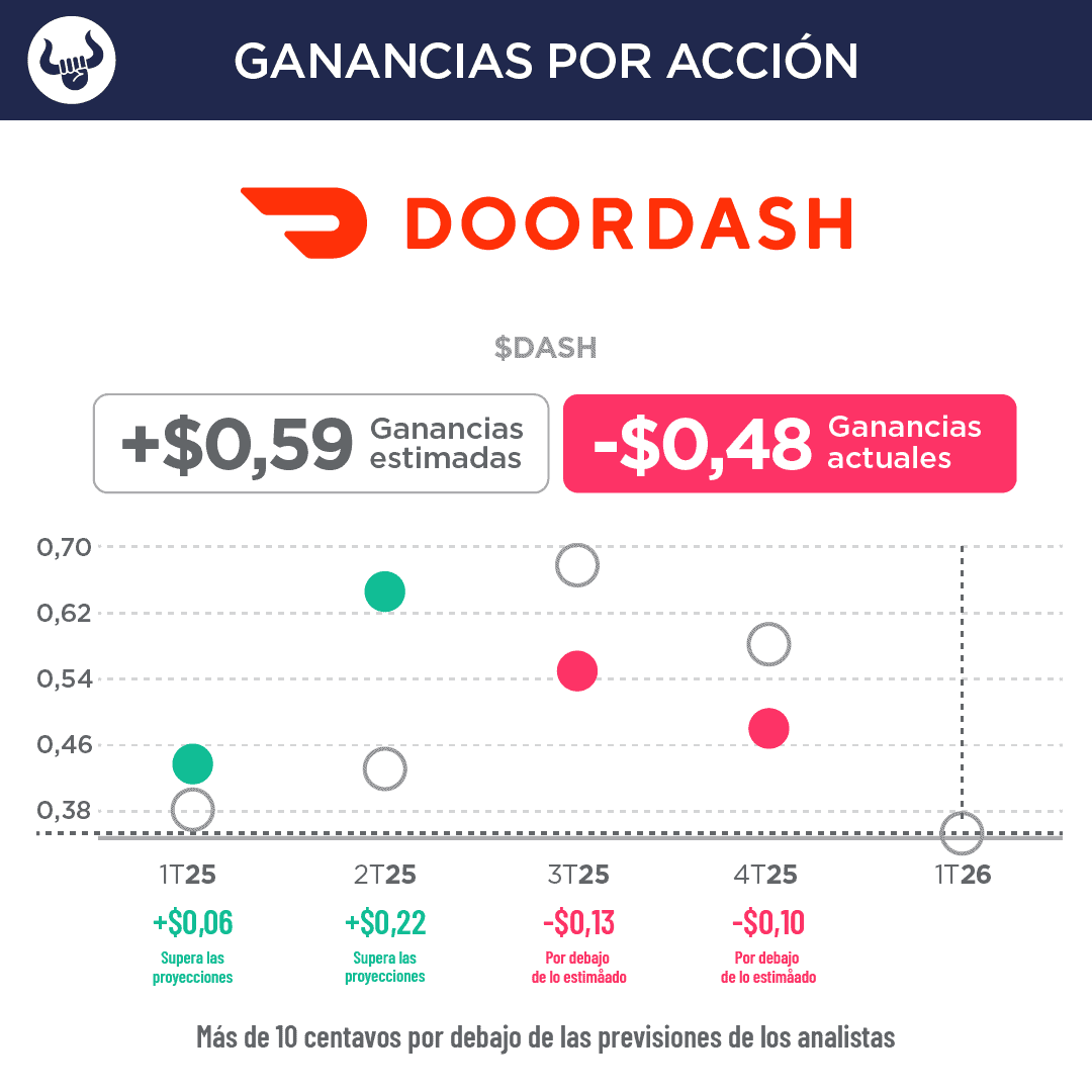 • Doordash no alcanza las expectativas de beneficios por acción.