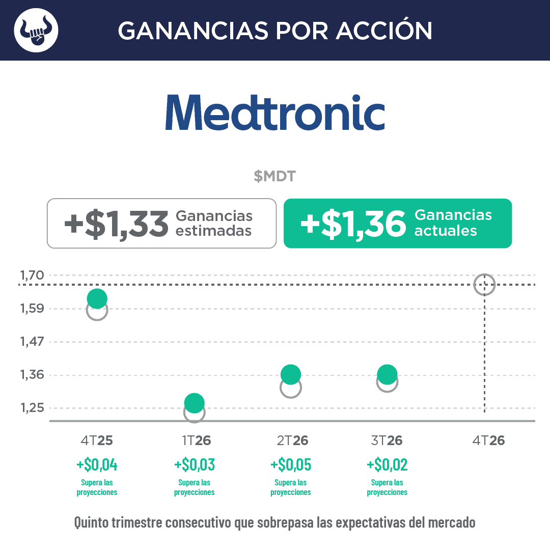 • Medtronic superó las expectativas impulsada por la fuerte demanda de sus dispositivos cardíacos, pero sus acciones cayeron después de que la empresa mantuviera sin cambios su previsión de beneficios ajustados para todo el año.