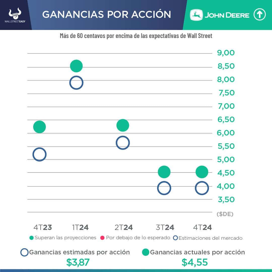 - El fabricante de maquinaria obtuvo beneficios netos de $1.245M, o $4,55 por acción, y de $7.100M, o $25,62 por acción, en el año fiscal. El mercado preveía un beneficio por acción de $3,87 e ingresos de $9.199M para el trimestre.