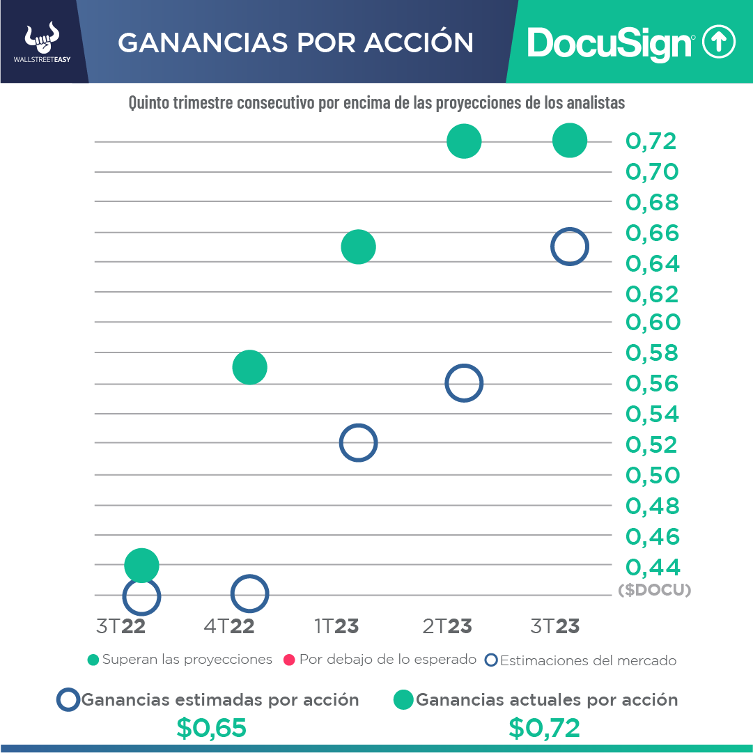 - DocuSign vio 16 revisiones positivas y 1 negativas de beneficios por acción en los últimos 90 días. Según InvestingPro, la puntuación de la salud financiera de la empresa es "buen rendimiento".