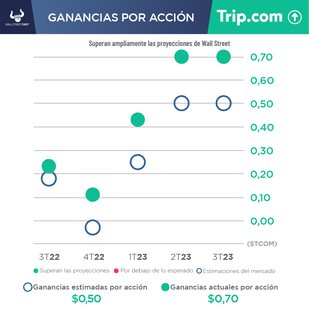 - Trip.com obtuvo ingresos de $1.550M en el periodo, sque estuvieron por encima de las previsiones de los analistas, que esperaban ingresos de $1.510M.