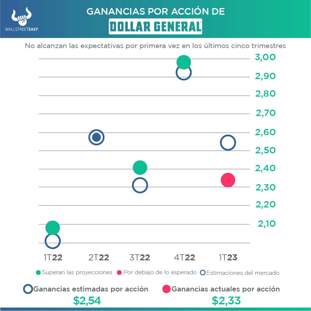 - El beneficio por acción de la empresa de descuentos se situó en $2,33, menos que la estimación de los analistas de $2,54, mientras que los ingresos superaron las estimaciones al alcanzar los $9.500M, frente a la proyección de $9.420M.