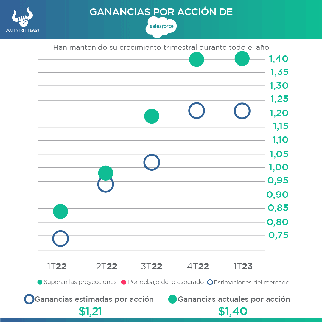 - El proveedor de soluciones de computación en la nube tuvo beneficios por acción de $1,40 por acción superaron la estimación de consenso de $1,21, y se dispararon +10% respecto a los beneficios del trimestre anterior, de $1,27 por acción.