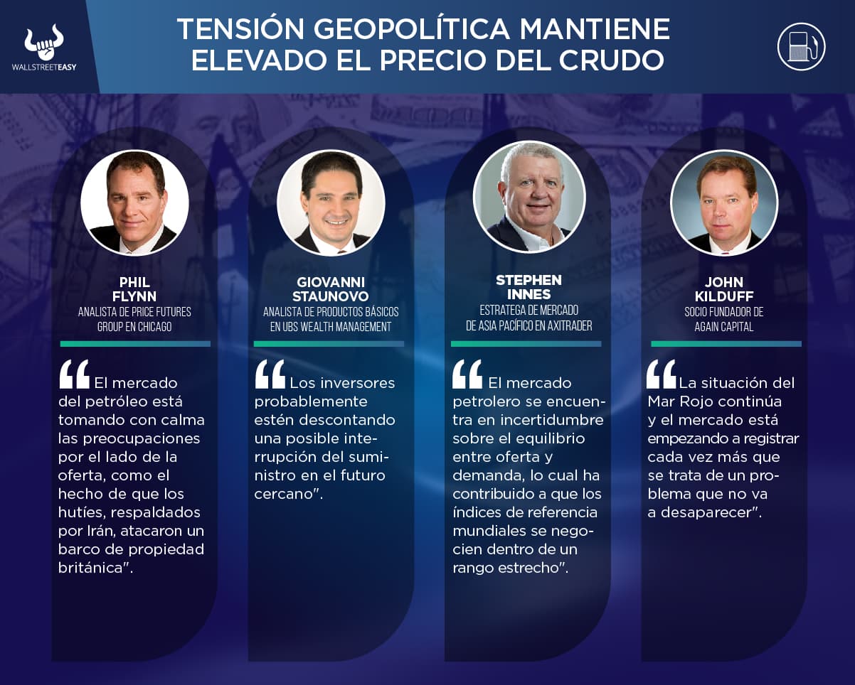 Los precios del petróleo empezaron la semana con subidas consecutivas en medio de la incertidumbre sobre las perspectivas de un alto al fuego en la guerra entre Israel y Hamas, y porque algunos inversores esperan que la OPEP+ extienda sus recortes de producción más allá del primer trimestre. Nuevo rango esperado es de $72 - $80.