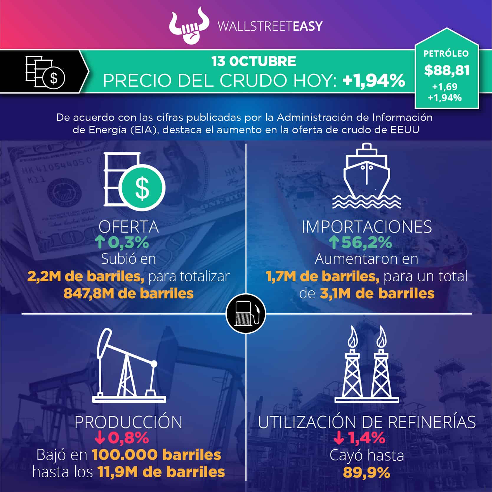 Al cierre de esta edición, el precio del barril subió hasta $88,81, lo que representa +1,94% en comparación con el día miércoles.