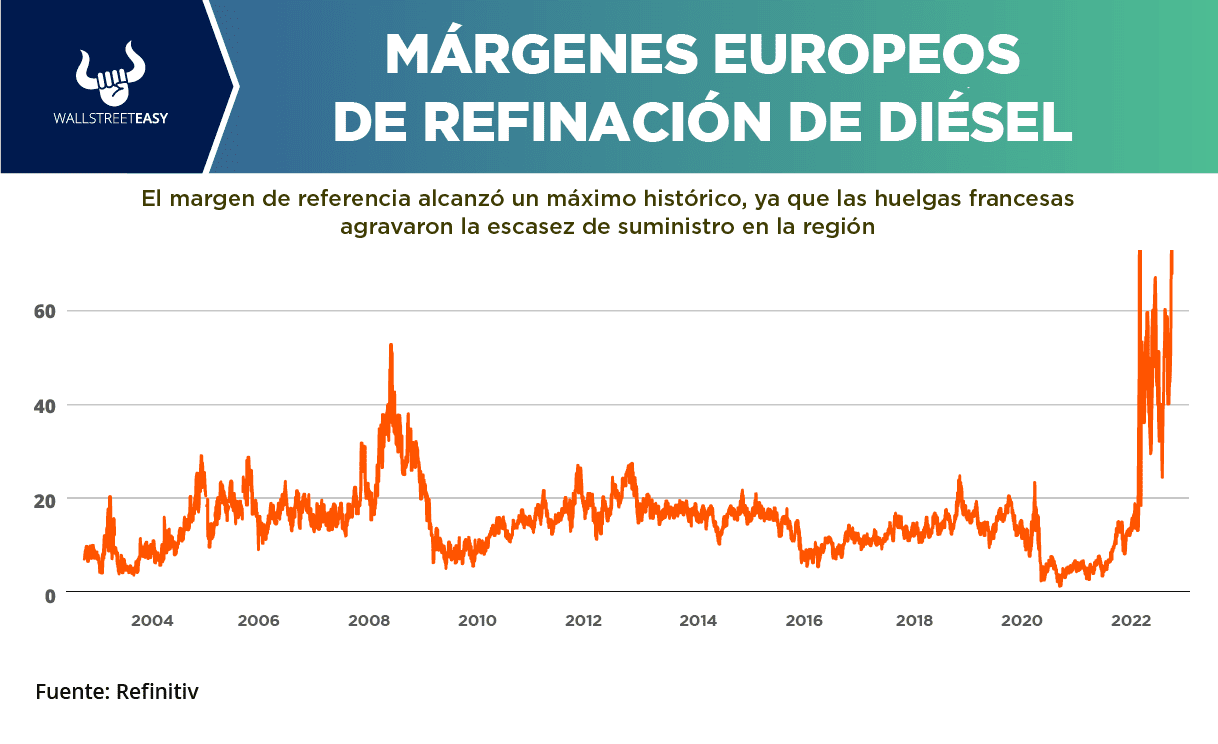 Los precios del gasóleo (diésel) han alcanzado máximos históricos esta semana tanto en Europa como en Norteamérica, ya que la situación de los inventarios, ya de por sí muy ajustados, se ha visto agravada por la huelga de las refinerías francesas: